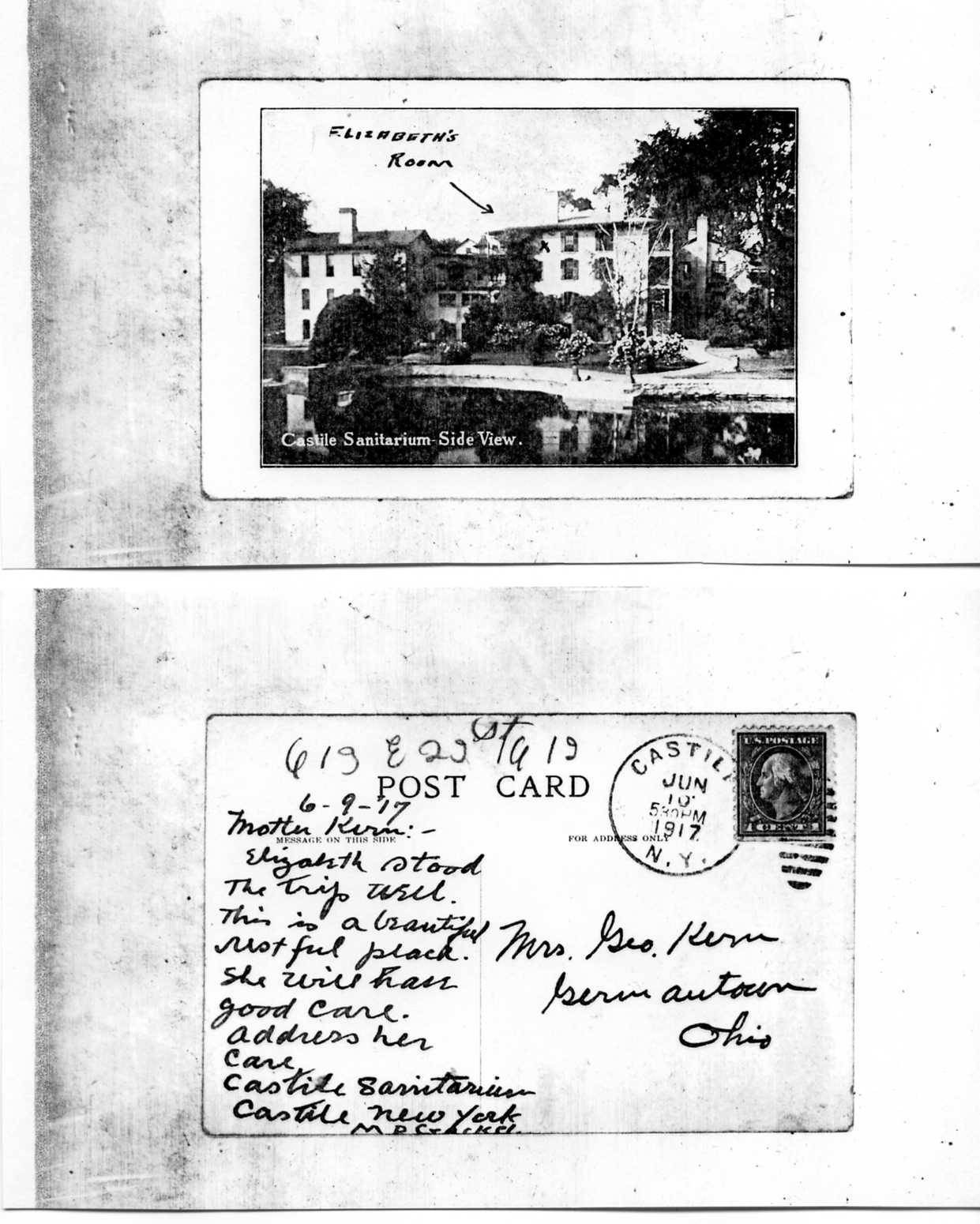 - After Carl B. Kern's accident, his widow Elizabeth Kern was placed in Castile Sanitorium in New York.