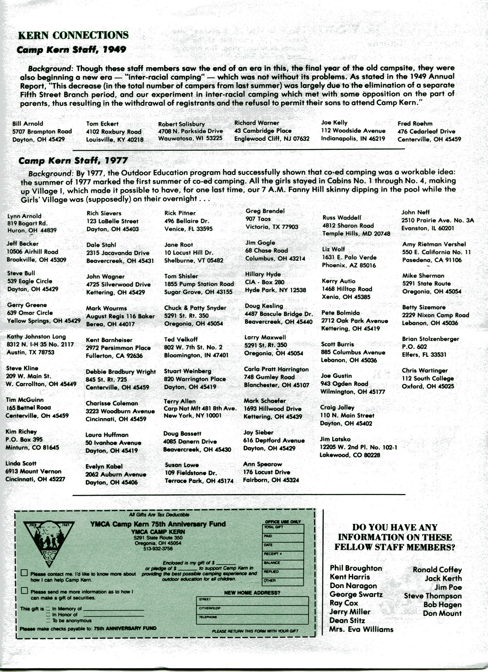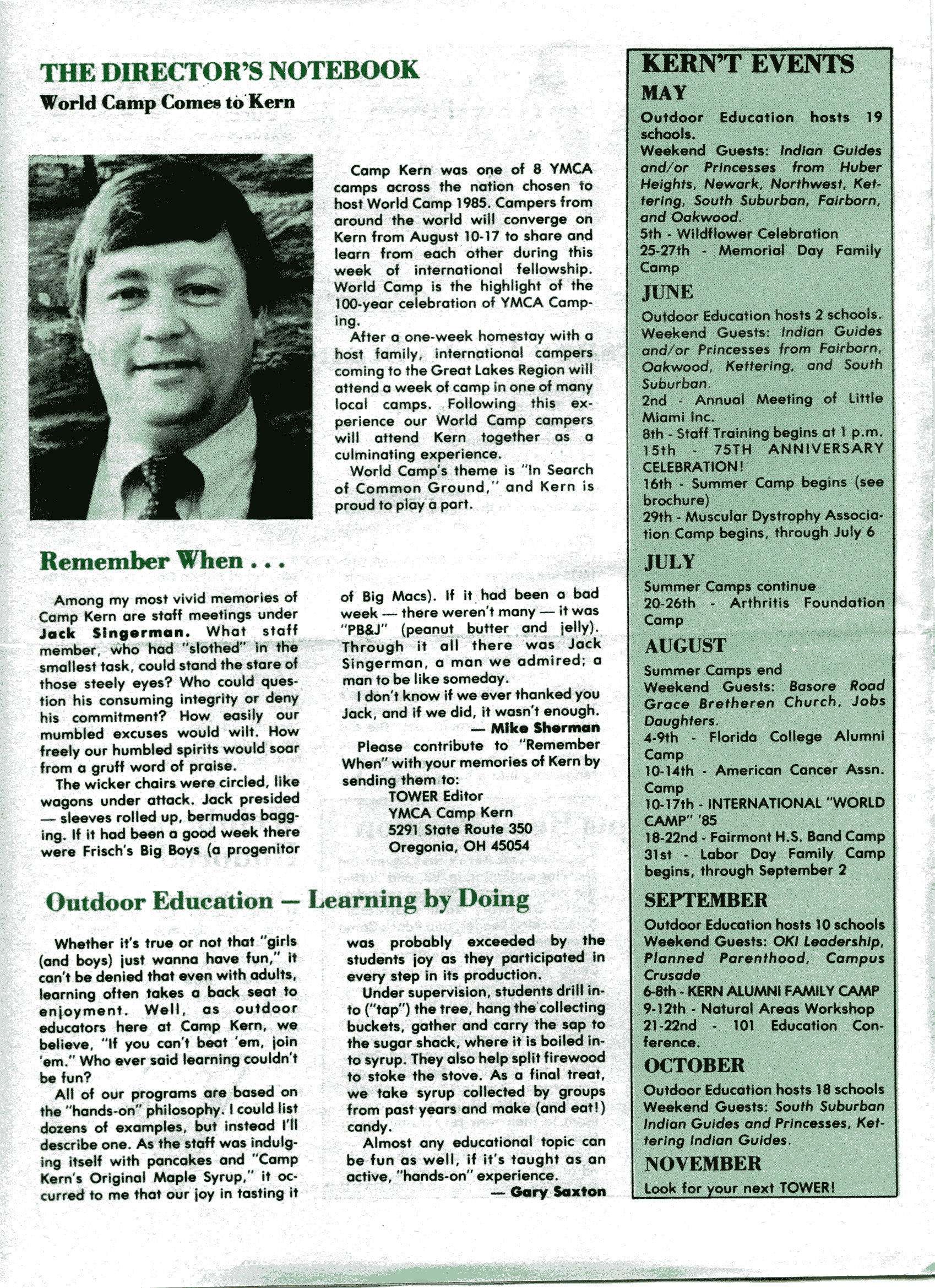 - Dave Thompson shares his YMCA Camp Kern Songbook from 1990,